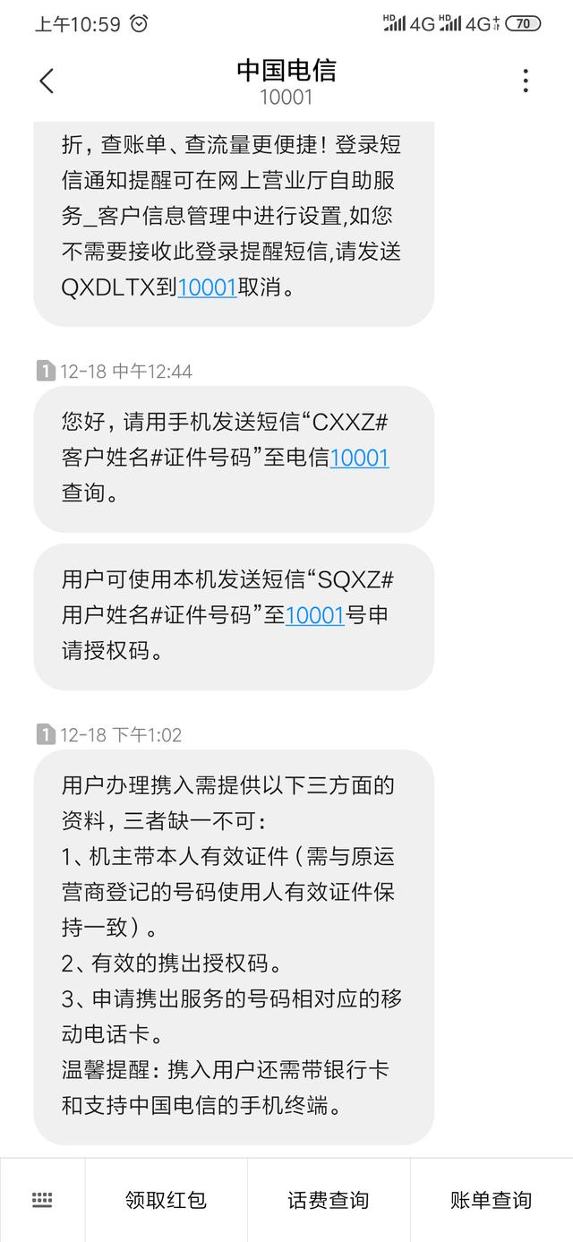 如果不符合条件,请按提示把不符合的条件先处理。比如欠费的先缴费,绑定业务的先解绑,我的移动卡在不知情的情况下加入了一个不认识的短号网,电信赠送了5G流量,都是查询是否符合携出条件才知道,联系客服取消就行。只要符合条件就可以发送以下指令获取携号转出授权码: