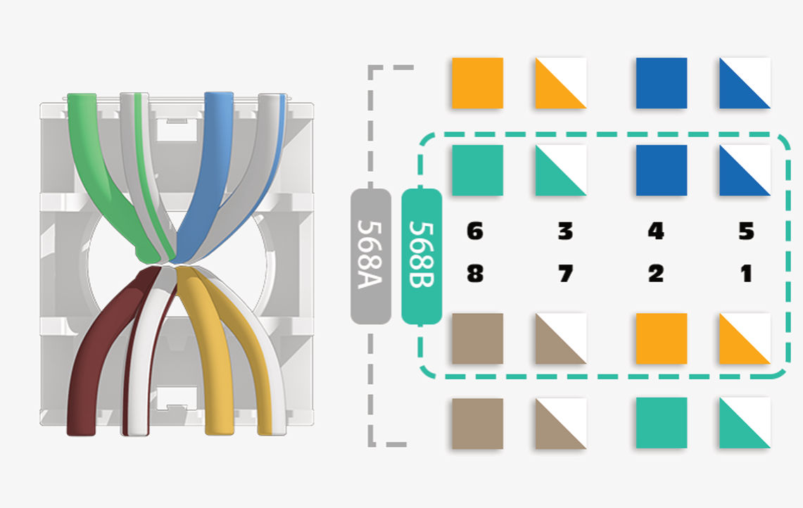 如果网络面板已经装好的话,网线水晶头直接插入面板即可,要是网络面板后面网络模块还没有打线的话,那么就要打线哦,打线的方式也是按照T568A/T568标准线序进行打线的哦。